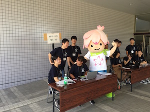 健康スポーツ科学科も共催で、「身体組成測定、骨密度測定、運動機能測定」を行い、本学科の教員3名と学生スタッフ7名が