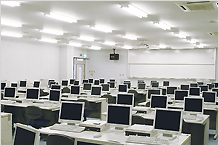 実社会に適用した標準的アプリケーションソフトウェアの利用法を学べるコンピュータ演習室。授業がない時には学生に開放され自由に使うことができます。