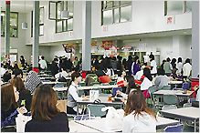 事務局:1階はさまざまな手続きをスムーズにしてくれる事務局が、またロビーには、奨学金情報や就職情報などが提示されています。