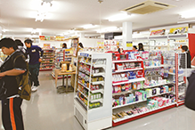授業に必要な文具やテキストのほか、雑誌や書籍、お菓子まで購入でき、学生生活をサポートしています。(8号館/福利厚生棟)