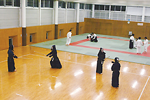 1階は体育系・文化サークルの部屋が集まるクラブハウス。2階は柔道、剣道、合気道用の武道場です。