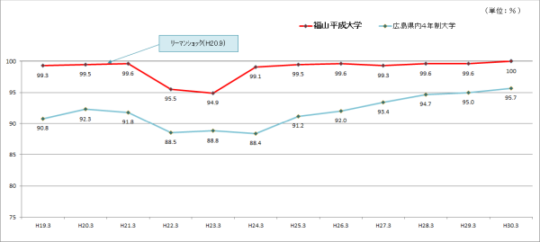 就職率② (就職者/卒業者ー大学院等進学者) |