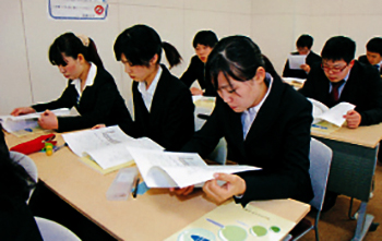 志望先への就職を実現するためには、しっかりとした自己分析と動機付け、そして自己アピールが必須のポイントとなります。3年次からは就職講座を30コマ実施し、夢実現のための就職支援を系統的に行っています。他にも、低学年(2年次)向けに就職活動準備講座を年2回実施したり、冊子「就職の手引」の解説から具体的なノウハウを伝えることや、また、履歴書用写真撮影会も行っています。