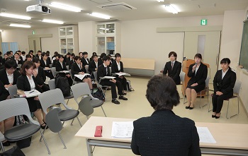 各地出身者のUターン就職をはじめ、地元学生の県外へのIターン就職など、さまざまな就職ニーズに対応するため、学生個々人の希望を尊重した求人開拓を行っています。また、企業や福祉施設等所から人事採用担当者を招いて大学主催の合同企業説明会あるいは企業単独説明会を開催したり、各学科の就職委員や就職課の職員による指導・助言を行うなど、多角的な支援により内定を勝ち取っています。