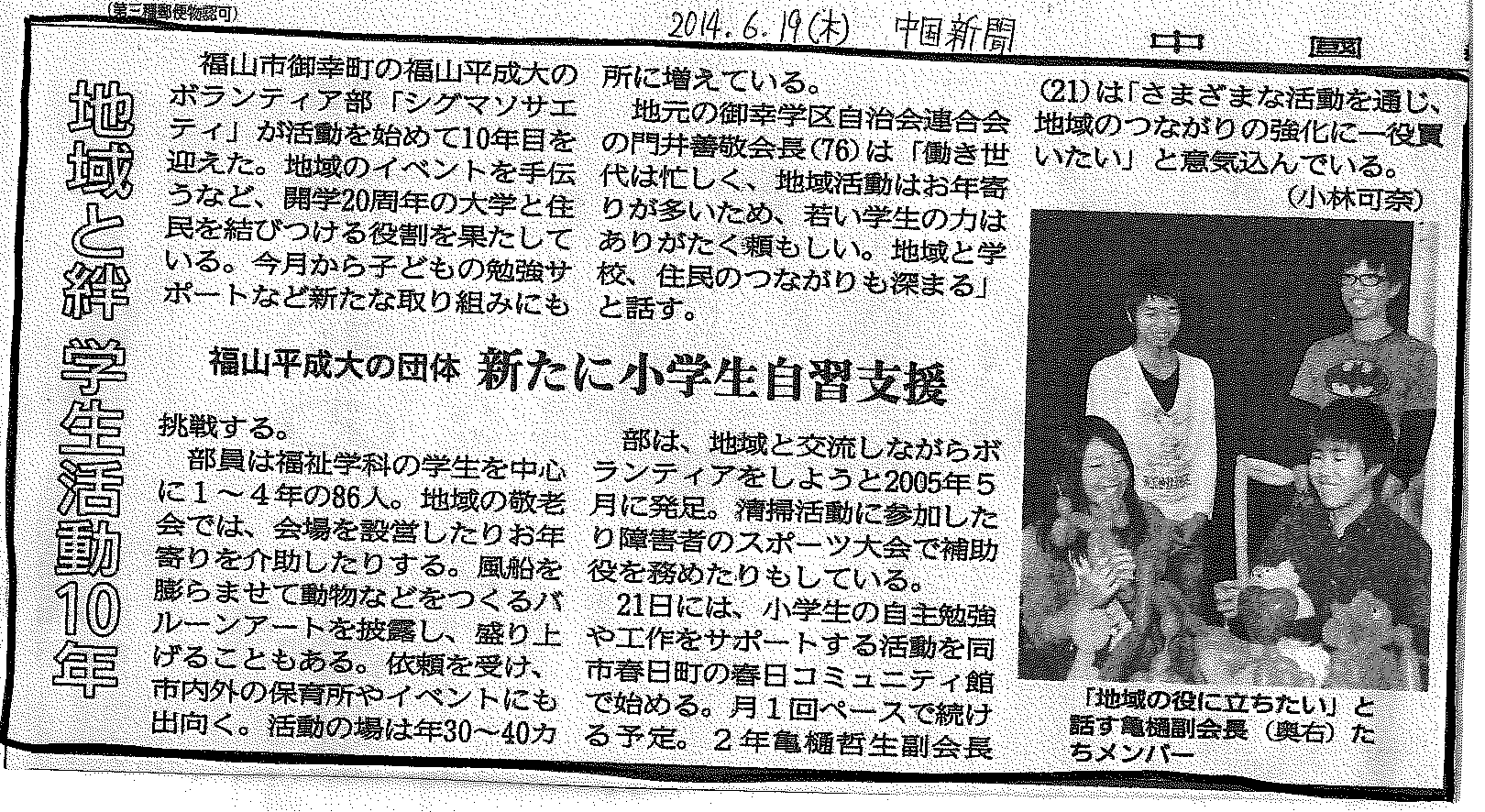 ソロプチミスト福山の支援により平成大学のボランティアサークルシグマソサエティが始まって10周年を迎えました。 この間、バルーンアートのイベント提供や学習支援、清掃活動などさまざまなボランティア活動を展開してきました。 これからも人とのつながりを創造する活動、笑顔を届ける活動を続けていきます! 気軽にボランティア情報室にお立ち寄りください! お待ちしています。