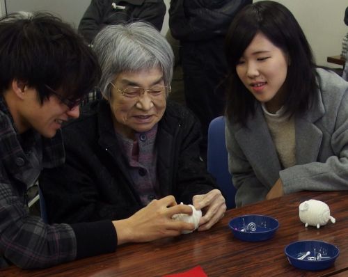 利用者の方と学生たちが協力して来年の「えと」のひつじ作りに挑戦。