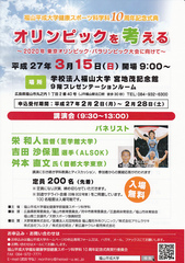 健康スポーツ科学科10周年記念講演会(3/15)のお知らせ(第2報)