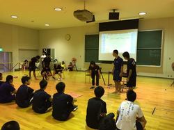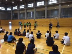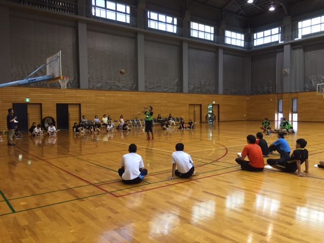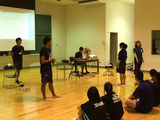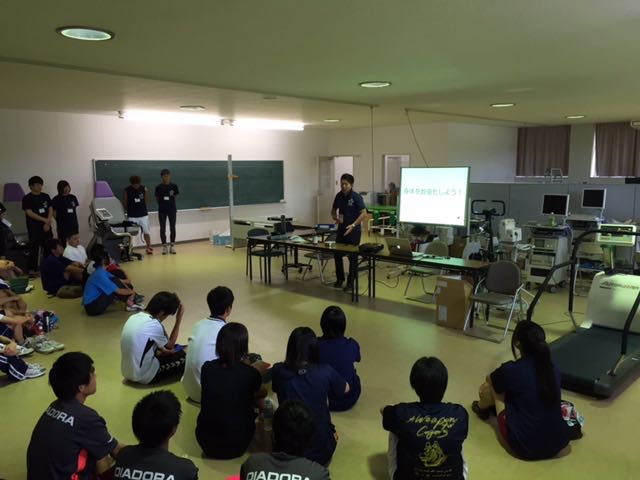 8月22日のスタートは、山西教授による学科紹介および模擬講義「トレーニングとプラクティス」でした。実技では、中須賀講師が教材としてのバスケットボールの考え方を教授し、林講師のは身体組成や心臓の働きを、実験を踏まえながら活動しました。