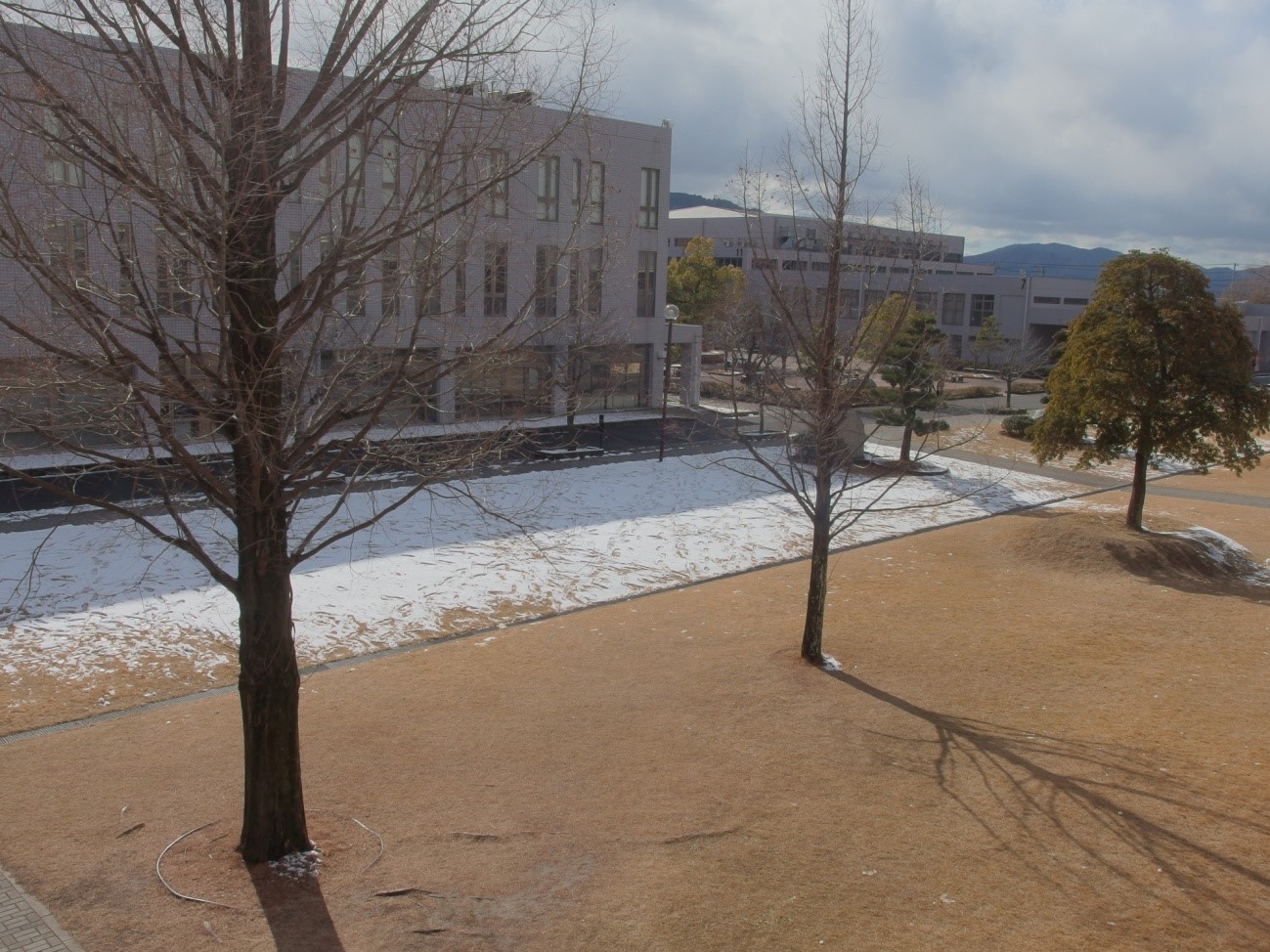 日本中が寒波に見舞われる中、キャンパスに雪が降りました。