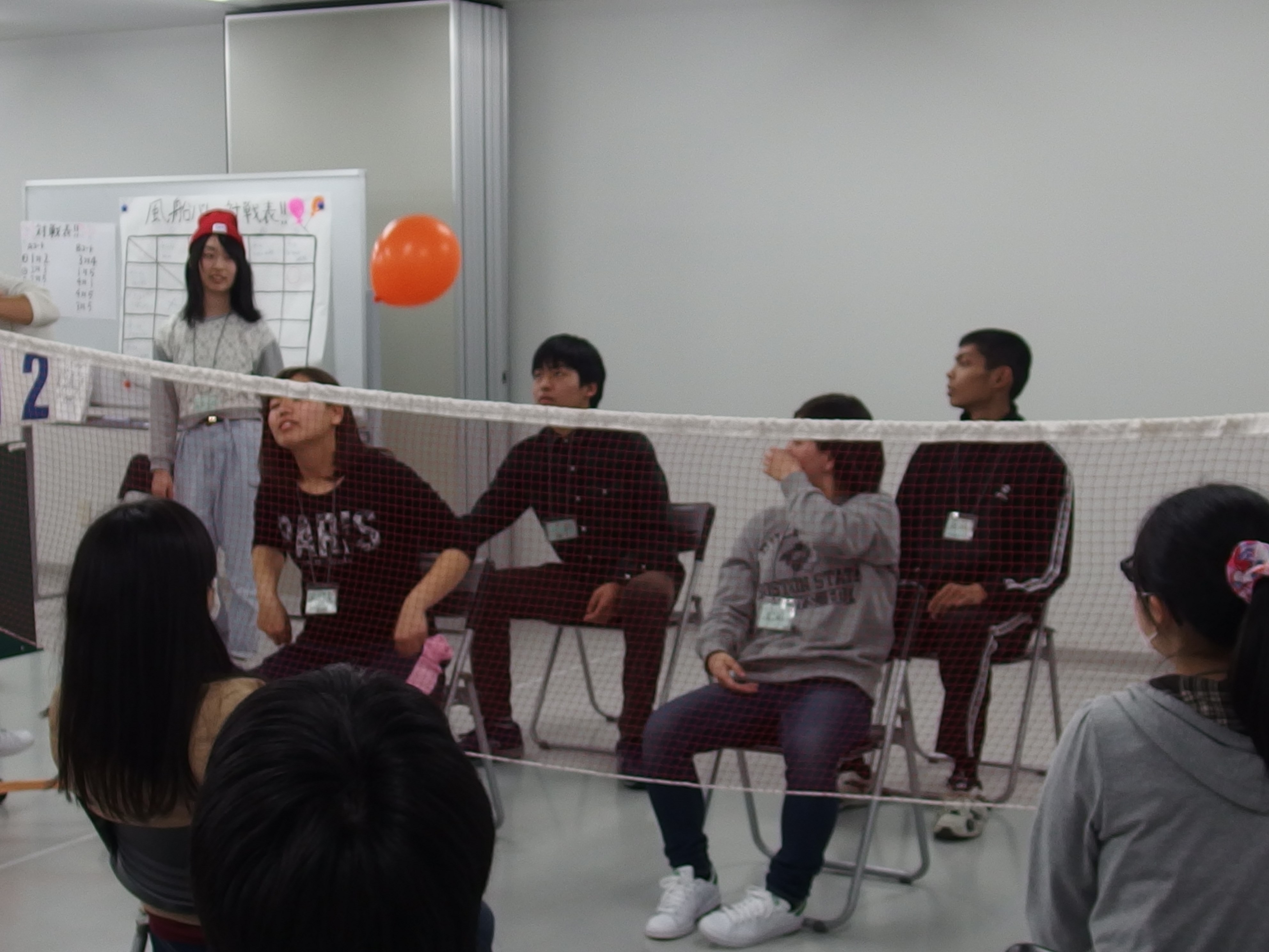 風船バレーなどの活動プログラムを通じて、チームワークが育まれました。福祉学科には社会福祉コースと介護福祉コースがありますが、コースの垣根を超えて仲間づくりを行うことができました。