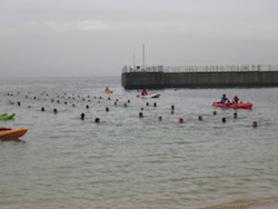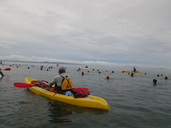 3日目には天候にも恵まれて、学生たちも緊張の中いよいよ遠泳を実施しました。