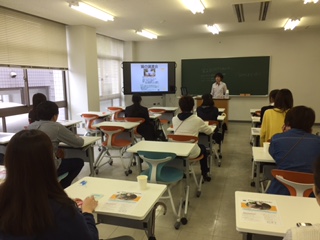 今回のセミナーの1時間目である認知症サポーター養成講座は、キャラバン・メイトでもある福祉学科教授の中司登志美先生が担当されました。教材を工夫された先生の講座では、認知症の特徴を分かりやすく説明していただけました。
