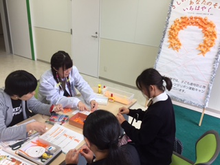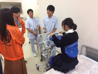 最後に、御幸祭探検ツアーとして、本学の5学科(福祉・こども・健康スポーツ科学・経営・看護)の出展を巡回ガイドが行われました。福祉学科の先輩たちが、学生生活のことを絡めながら楽しくガイドをしてくれました。