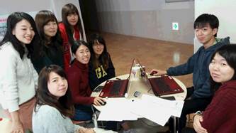 10月29日(土)に1階フロアにて2年生がグループワークをしていました。 メンバーのパソコンを持ち寄り、真剣なまなざしでディスカッションしています。