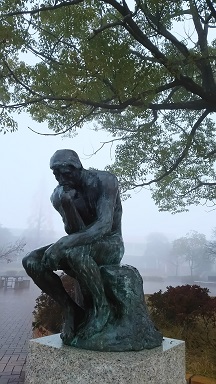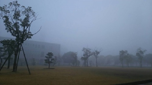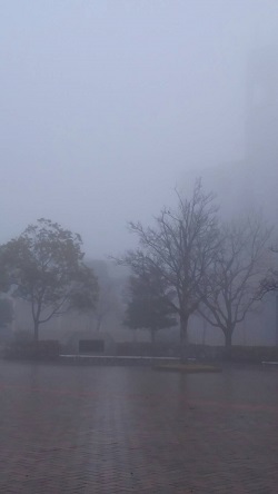 それにしても今朝の霧は濃く、大学のシンボルの時計台も全くみえません。
