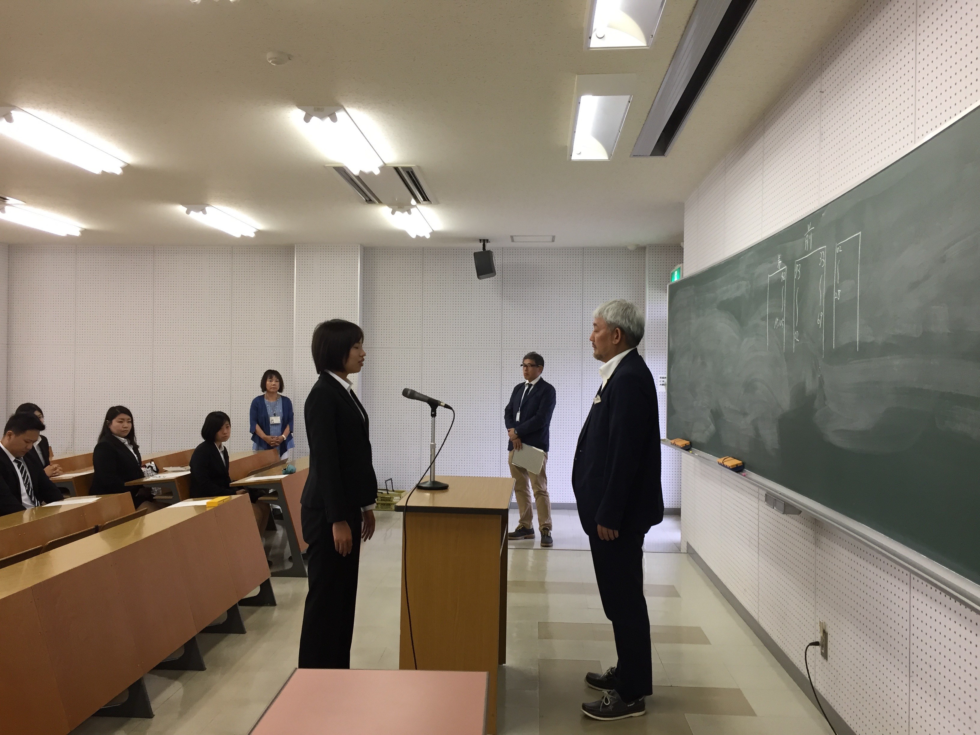 各先生方より激励の言葉をもらい,教職担当教員より諸注意を受け,学生たちは緊張した面持ちで耳を傾けていました。