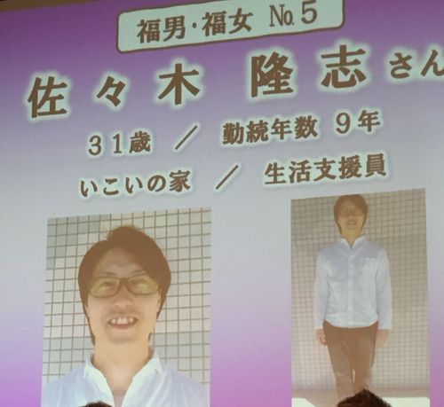 ひとり目はあいにく伝達式は欠席されていましたが、いこいの家に勤務されている佐々木隆志さん、