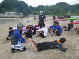初日は,各班別でのプログラムに取り組み,2日目には遠泳に向けてのプログラムや隊列練習など実践しました。