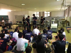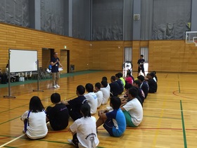午後からの模擬授業・演習では,「バスケットボールプレーヤーのためのコーディネーショントレーニング」と,
