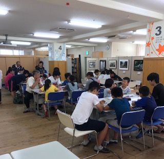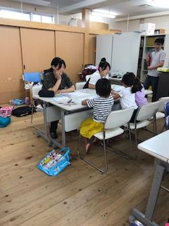 午後からは、大学生のお兄さん、お姉さんや地域のボランティアさんが先生役になって、子ども達が夏休みの宿題をしたり、自分のしたい勉強をするのに寄り添う学習会を開きました。一度休憩時間を取っただけの90分間、1年生から5年生、中学生がグループになってみんな集中して勉強に取り組めました。