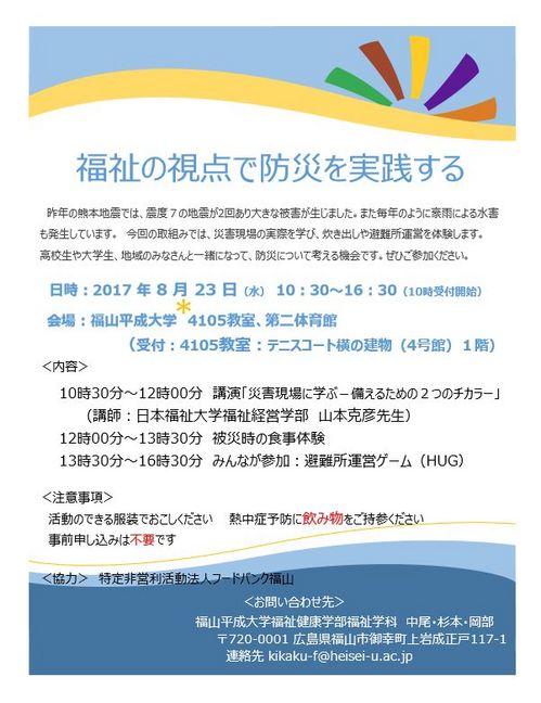<お問い合わせ先> 福山平成大学福祉健康学部福祉学科 中尾・杉本・岡部