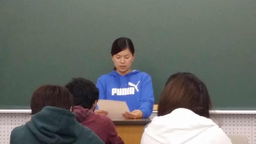 後期の授業では、自らの体験を整理し、他のメンバーに報告します。この報告会を通して、自分の体験を振り返る力、まとめる力、他者に伝える力を身につけます。