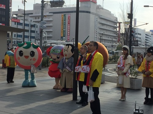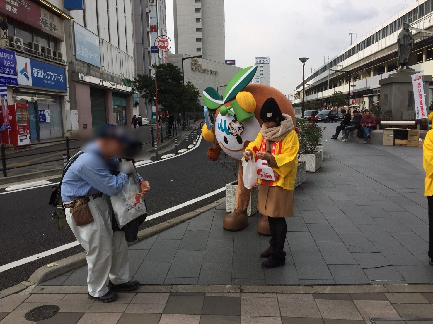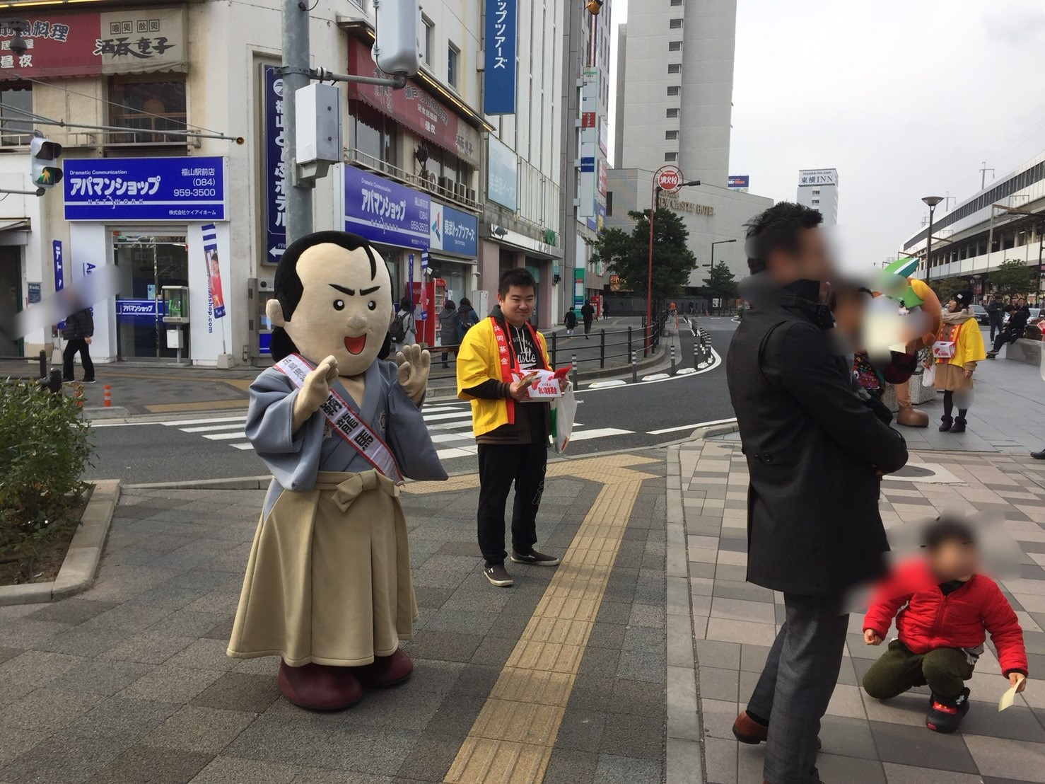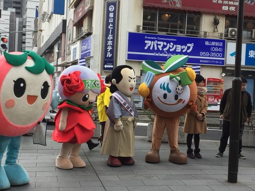 今回の募金活動には、福山市のキャラクターであるふくっぴー、ローラ、鞆龍馬、チッチが集まりました。福山市社会福祉協議会の呼びかけで、福山市の福祉関係者が勢ぞろいして募金活動を一斉にしました。ご協力いただいた市民の皆さま、ありがとうございました。