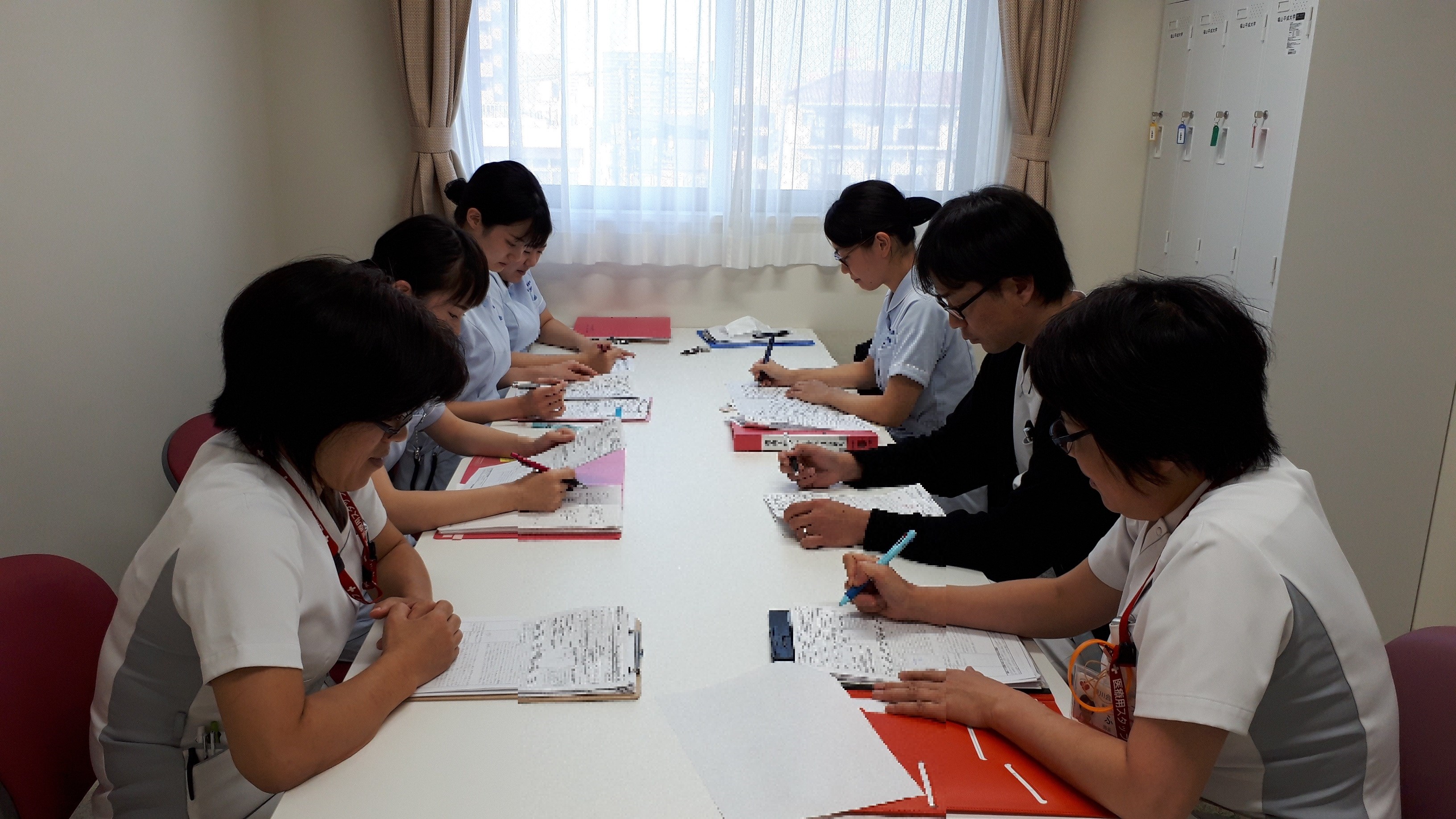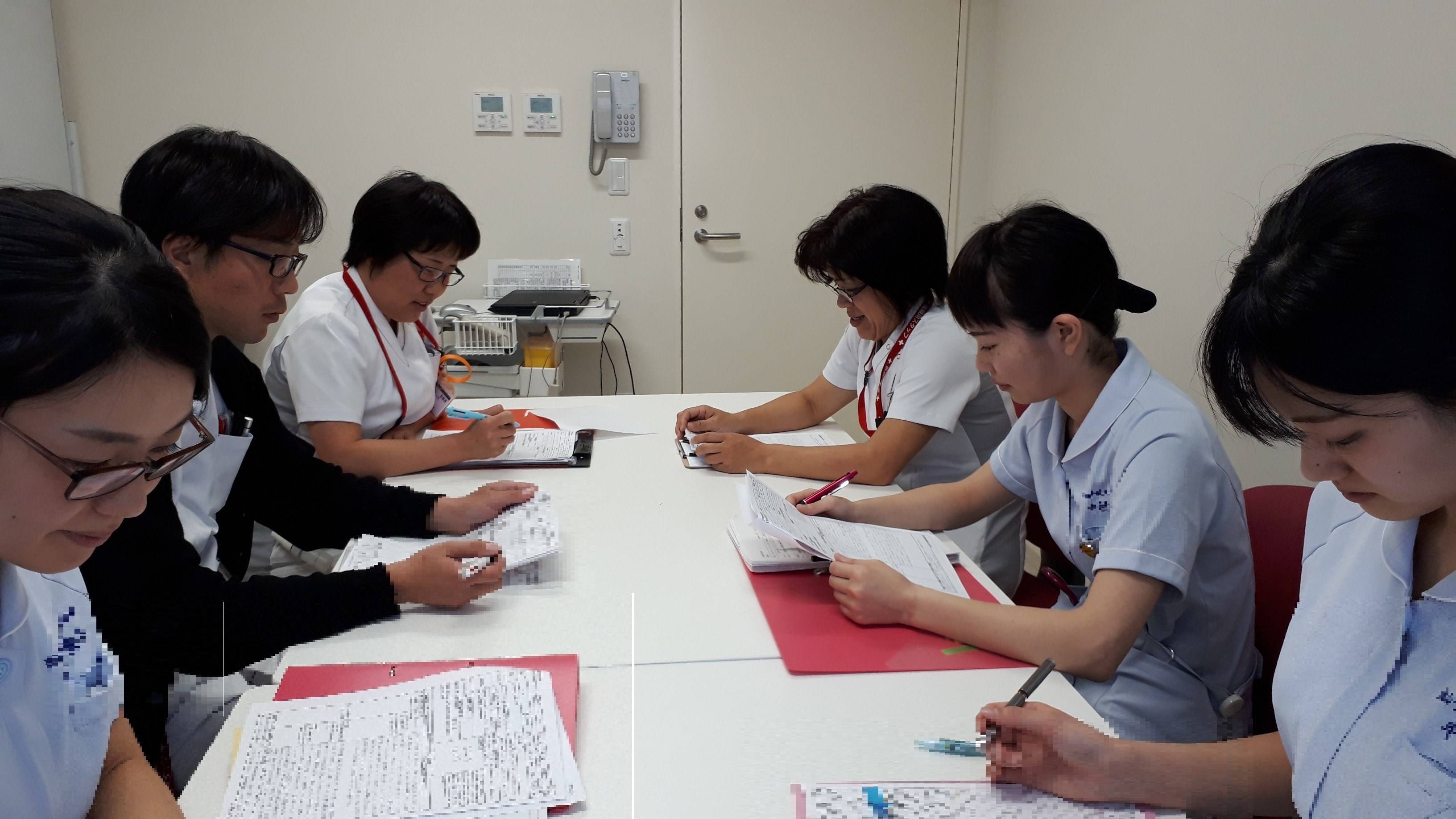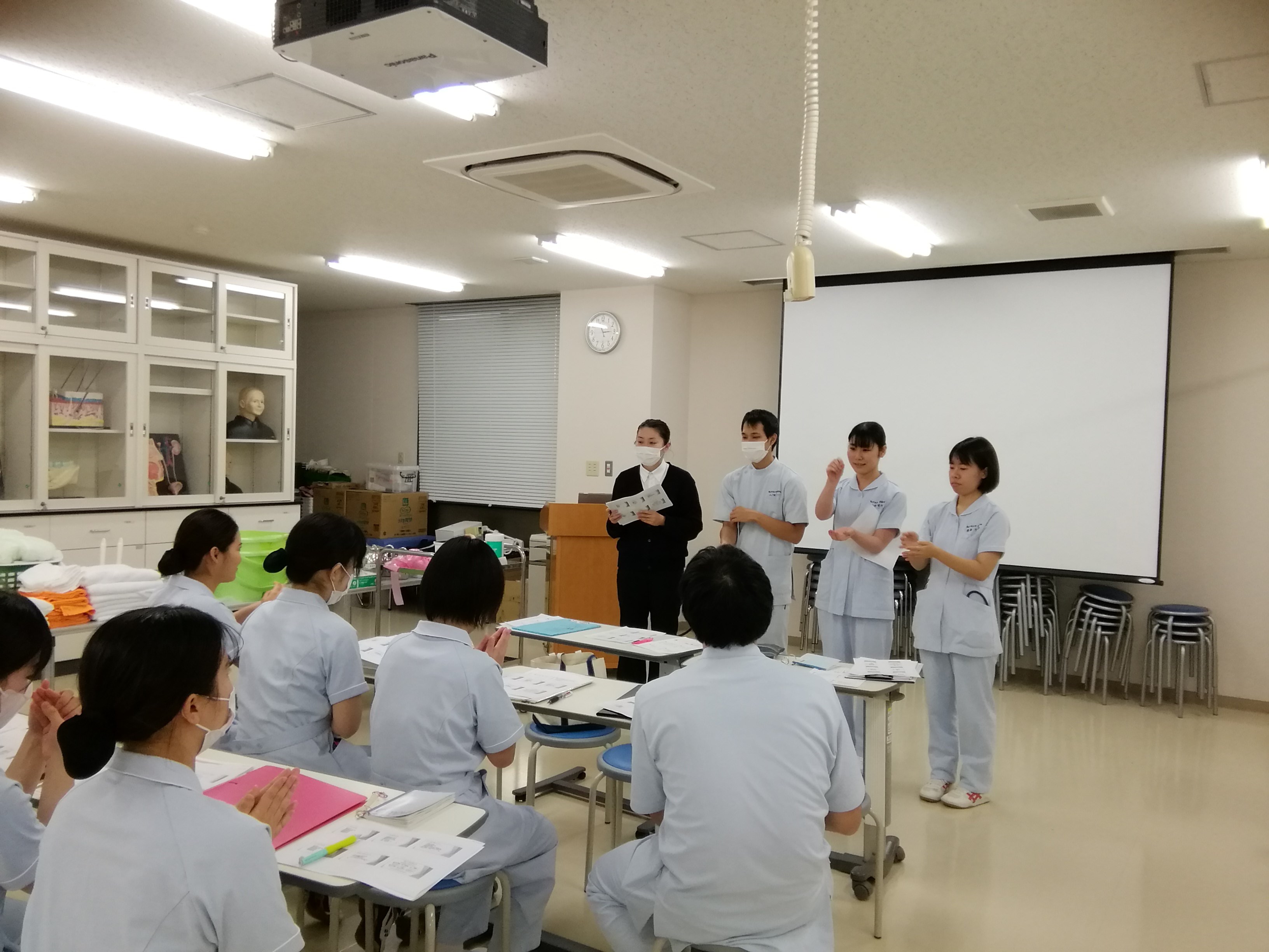 実習中の学びも発表し共有します。実際に看護している中で疑問や悩みがあり「少しでも学びたい」と、どの顔もとても真剣です。