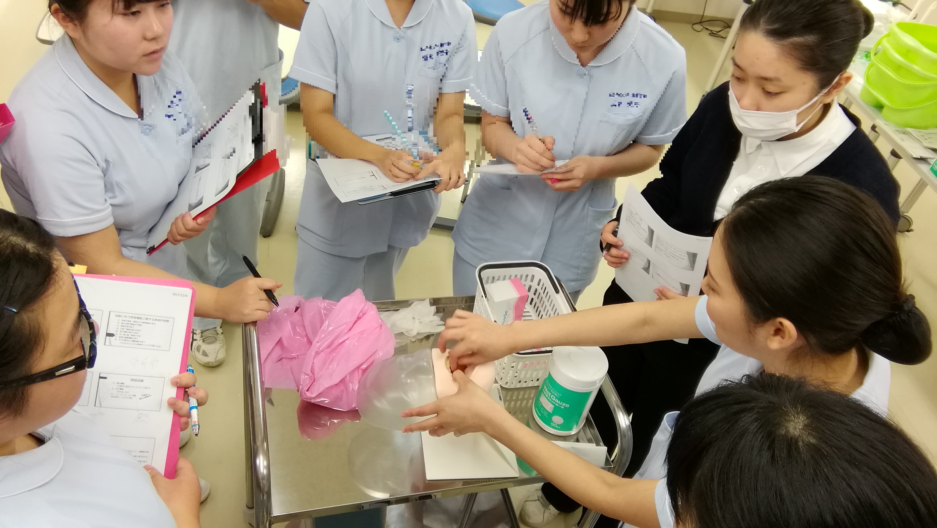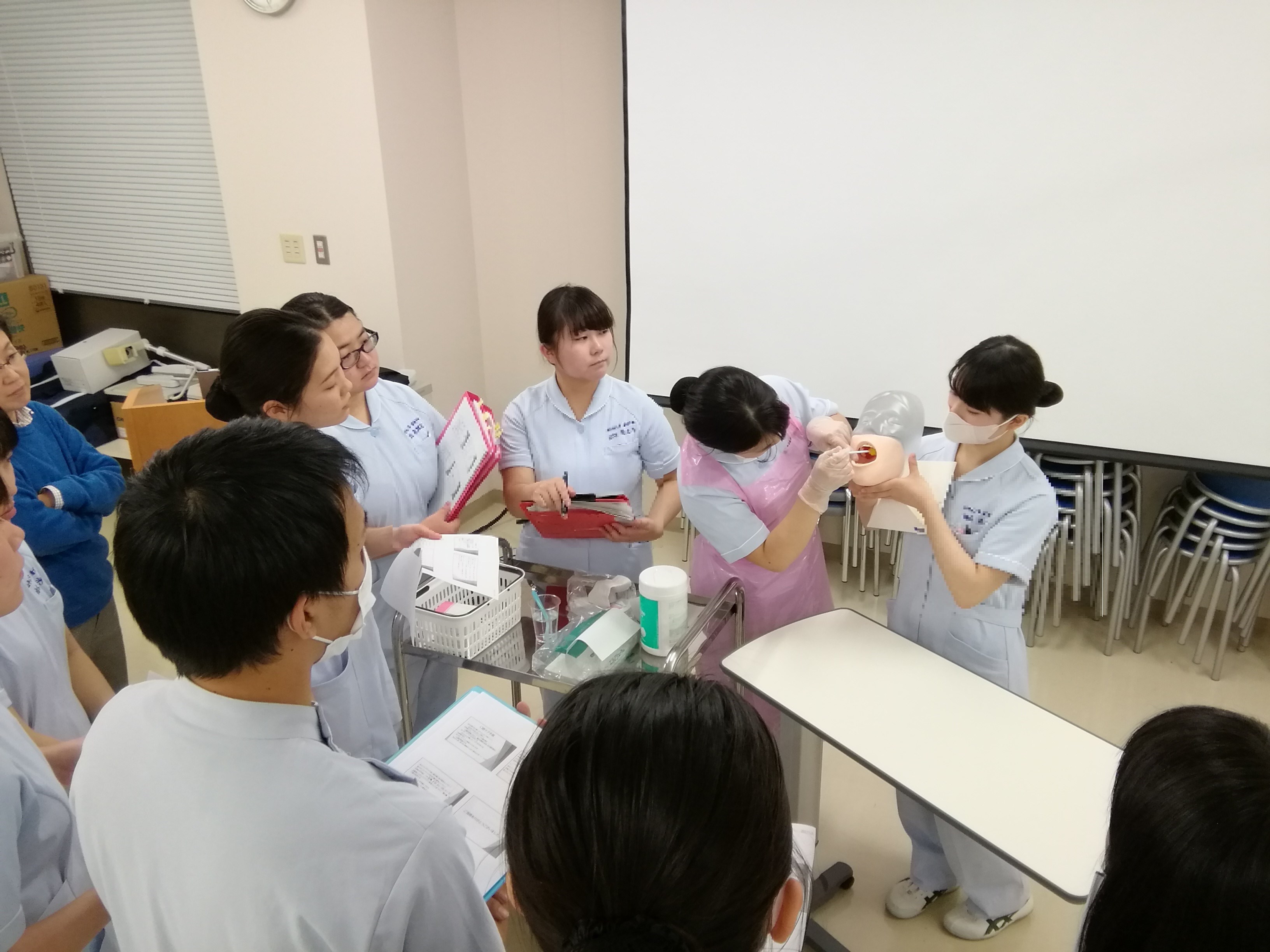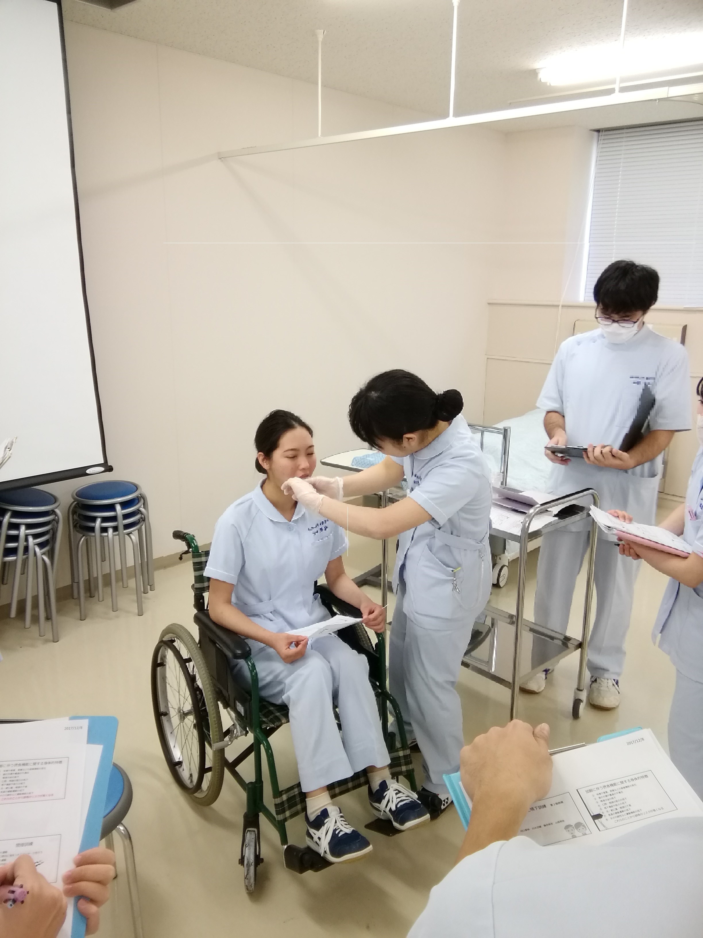 2年生は基礎看護学実習に向けて技術を確かなものにするために自主練習をしています。