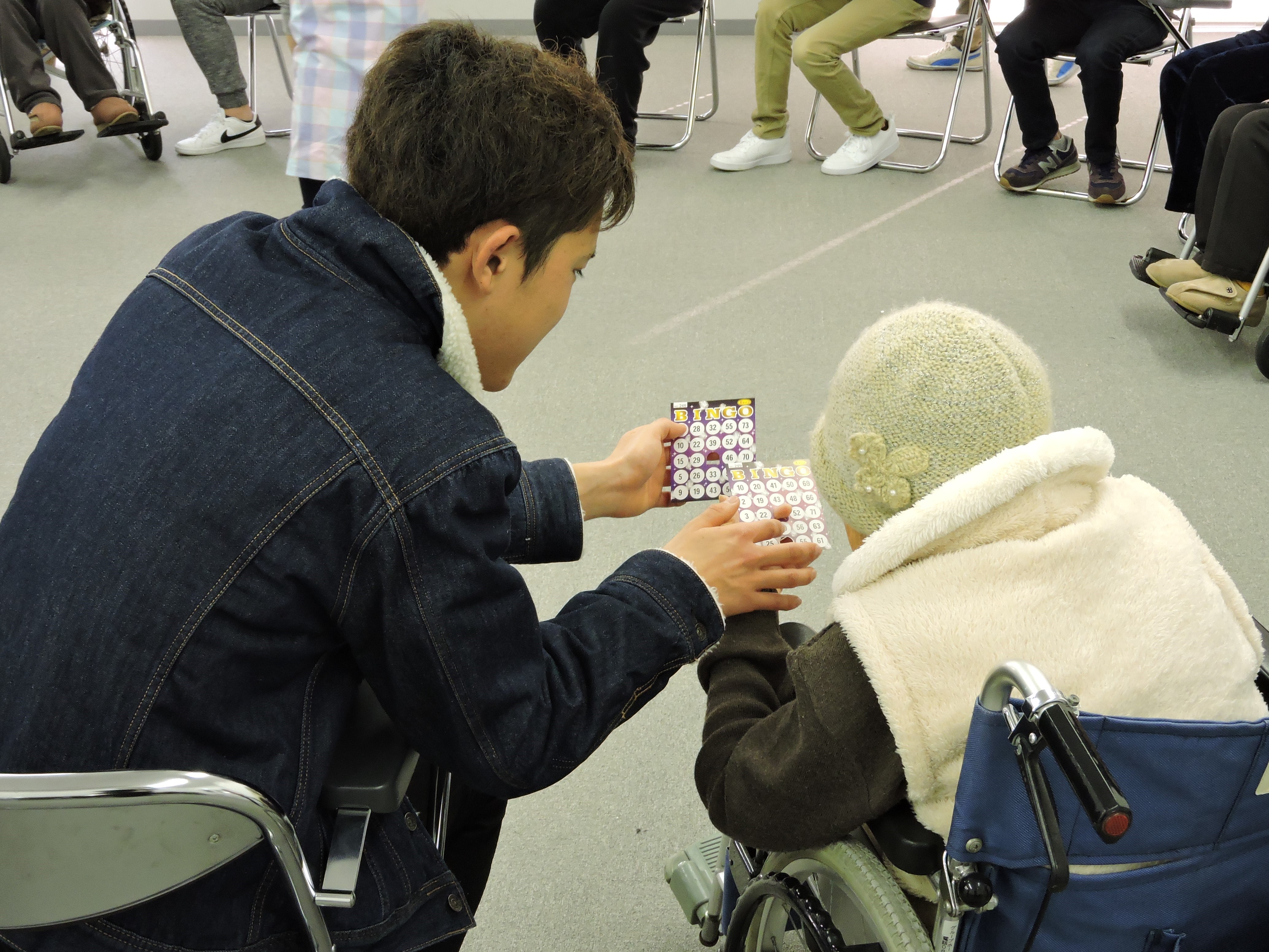 当日は、皆さんと一緒に楽しみながら体操、ビンゴゲーム、玉入れ等を行いました。