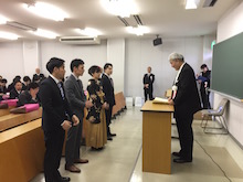 学科別学位記授与式では,学科長祝辞の後に卒業生一人一人に学位記が授与されました。