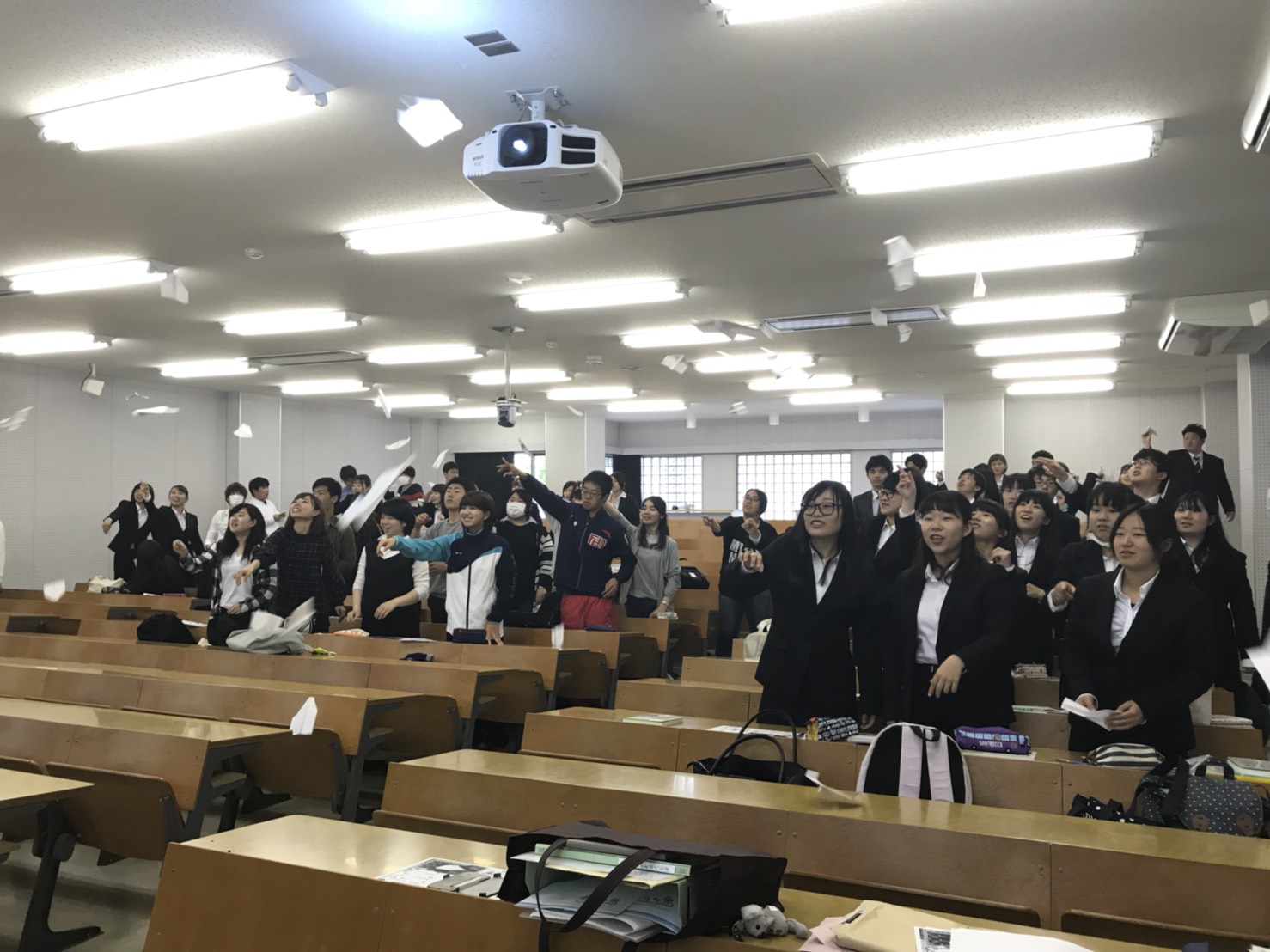 最後、紙飛行機を一緒に作って、一緒に飛ばしました!