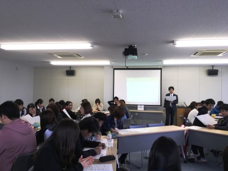 第1回目のゼミの授業では,1年生から4年生までの全学年が集まって合同ゼミを行いました。