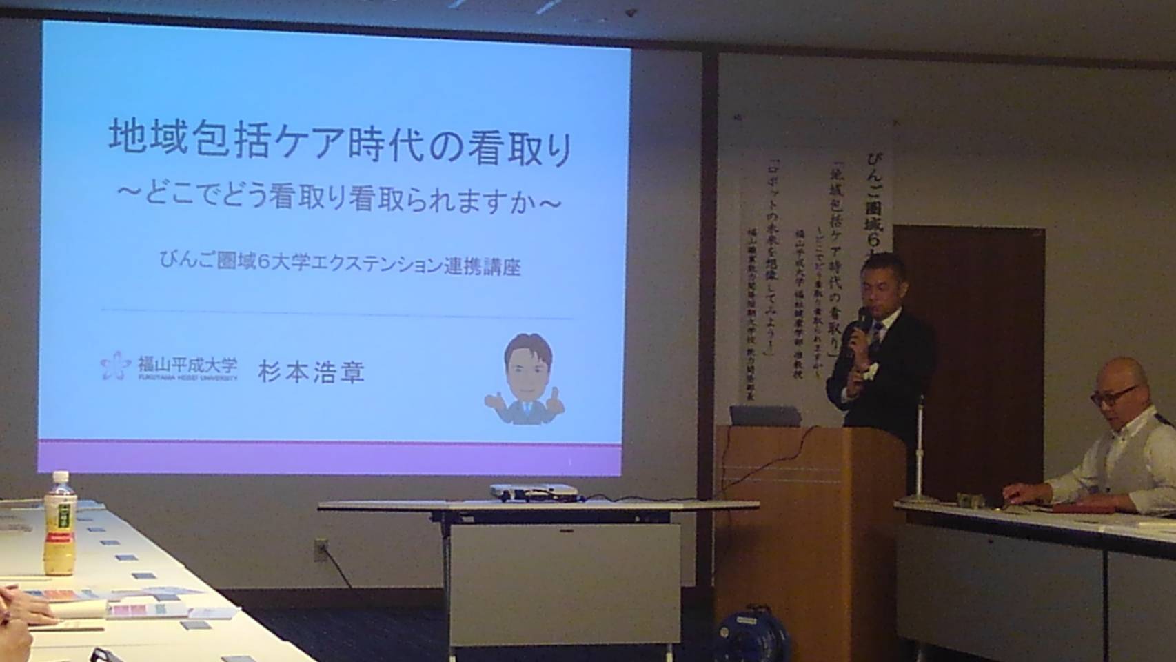 5月26日、備後圏域6大学の人気講座紹介として本学科の杉本浩章准教授による講演「地域包括ケア時代の看取り どこでどう看取り看取られますか」が行なわれました。参加いただいた皆様、ありがとうございました。