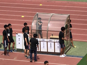 会場準備,セレモニーの打ち合わせなど,学生の多くが普段見ている公式戦の裏側を運営サポートとして経験しました。