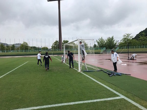 福山サッカー協会の受け入れとして本学サッカー部員の学生(5月27日に48名,6月6日に51名)が,