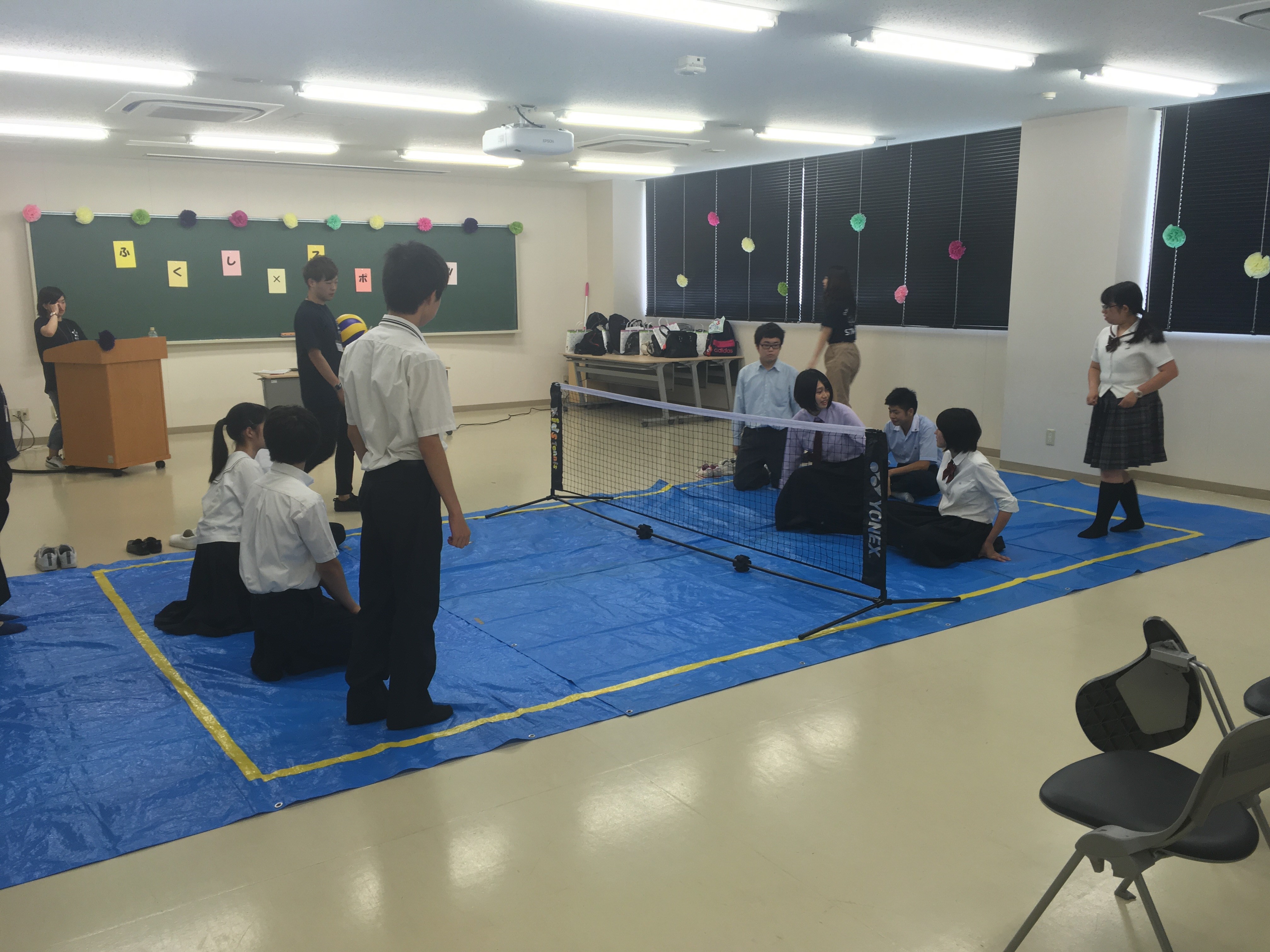 「ふくし×スポーツ」では障がい者バレーの試合を実際に体験し、福祉とスポーツの関係を学びました。