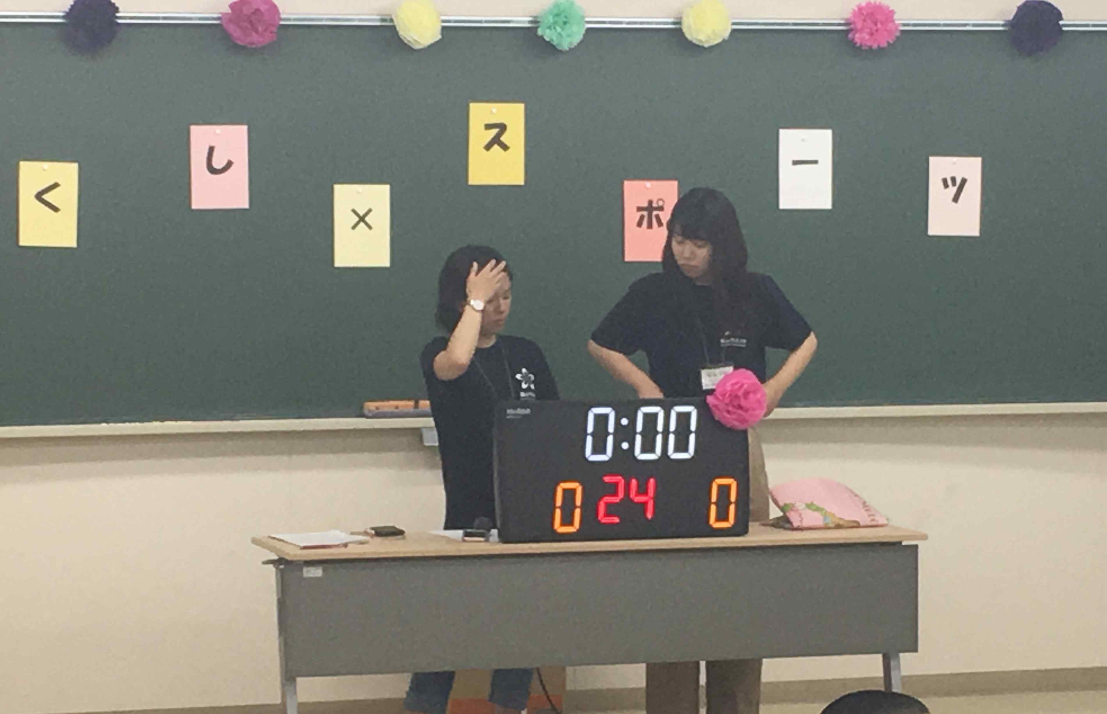 午後は模擬授業として社会福祉コースでは「ふくし×スポーツ」、介護福祉コースでは「クイズ・体験福祉用具の世界へGO!」の二つの模擬授業を行ないました。