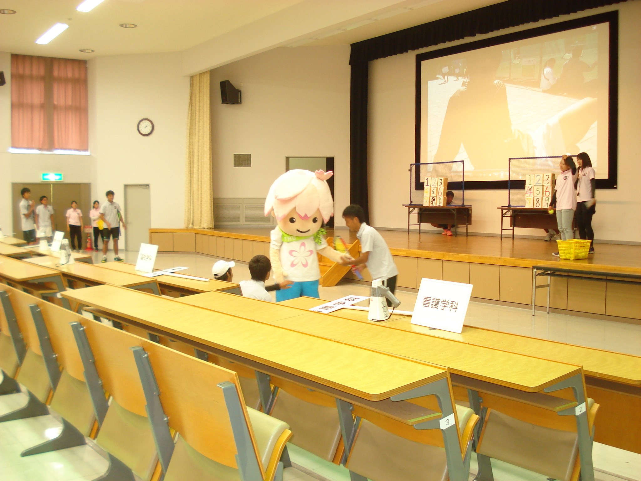 今回のオープンキャンパスでは、全体説明会の時にテニス部がサークル紹介をしてくれて、