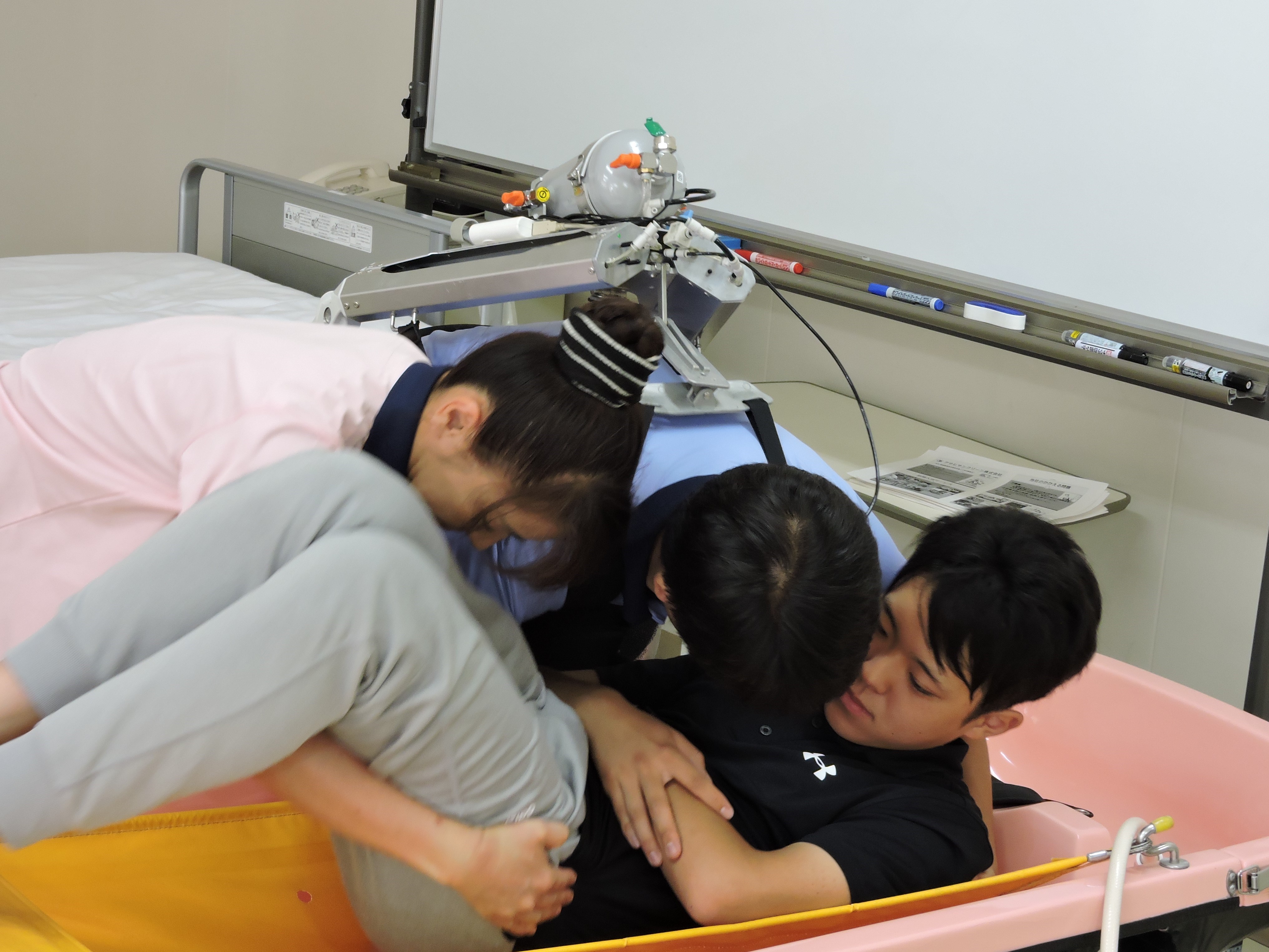 学生達からは、介護を受ける側の感想として、介護する側が力をすごく入れている感覚が