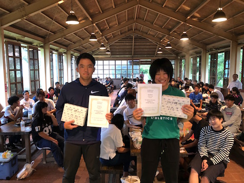 (写真)スポーツテストで表彰された藤井さん(右)と森谷くん(左) ※藤原さんは国体出場(飛び込み競技)のため欠席