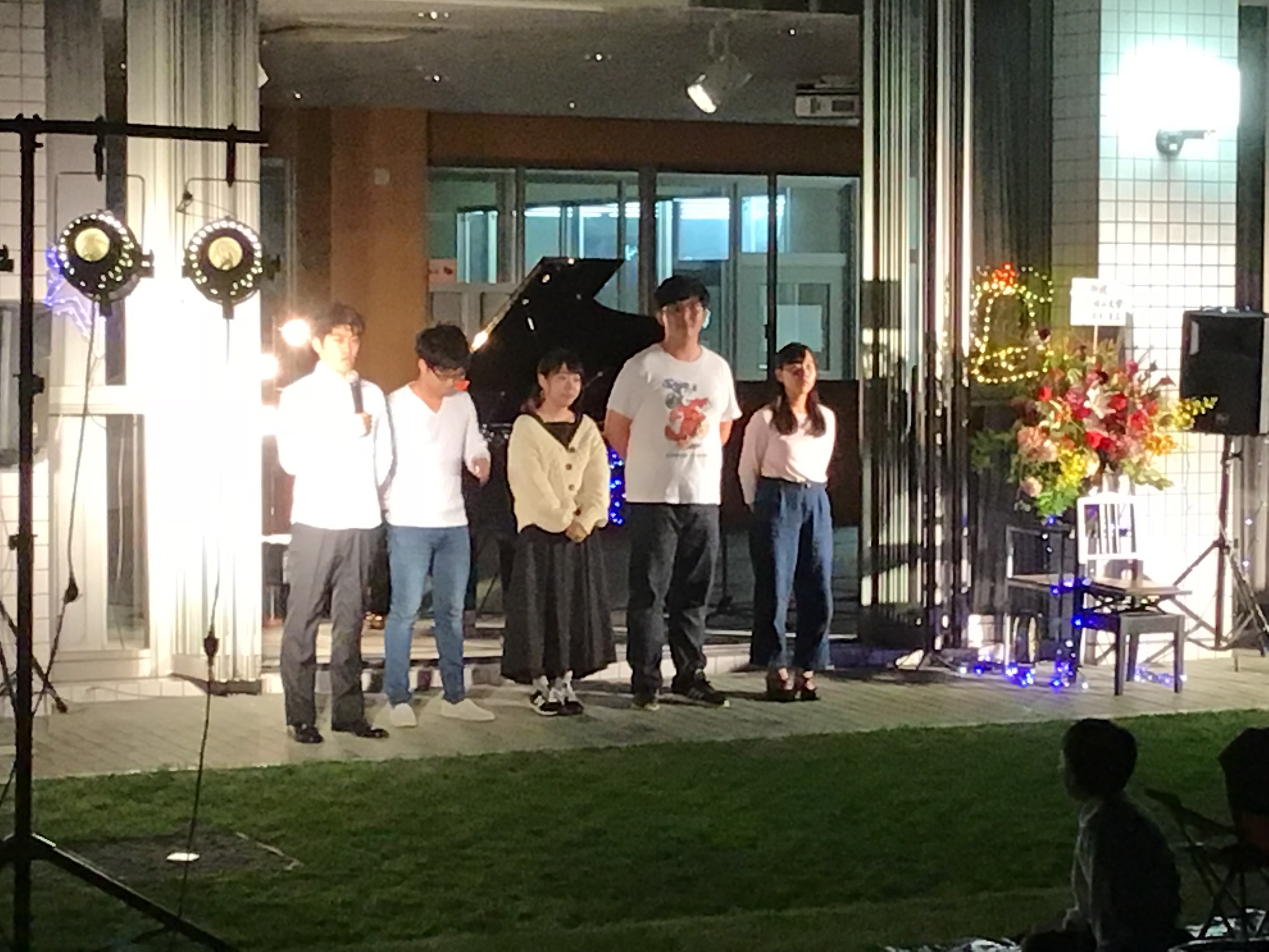 当日は前線の影響で、天候が心配されたところでしたが、無事雨も降らず、予定どおり野外で行うことができました。