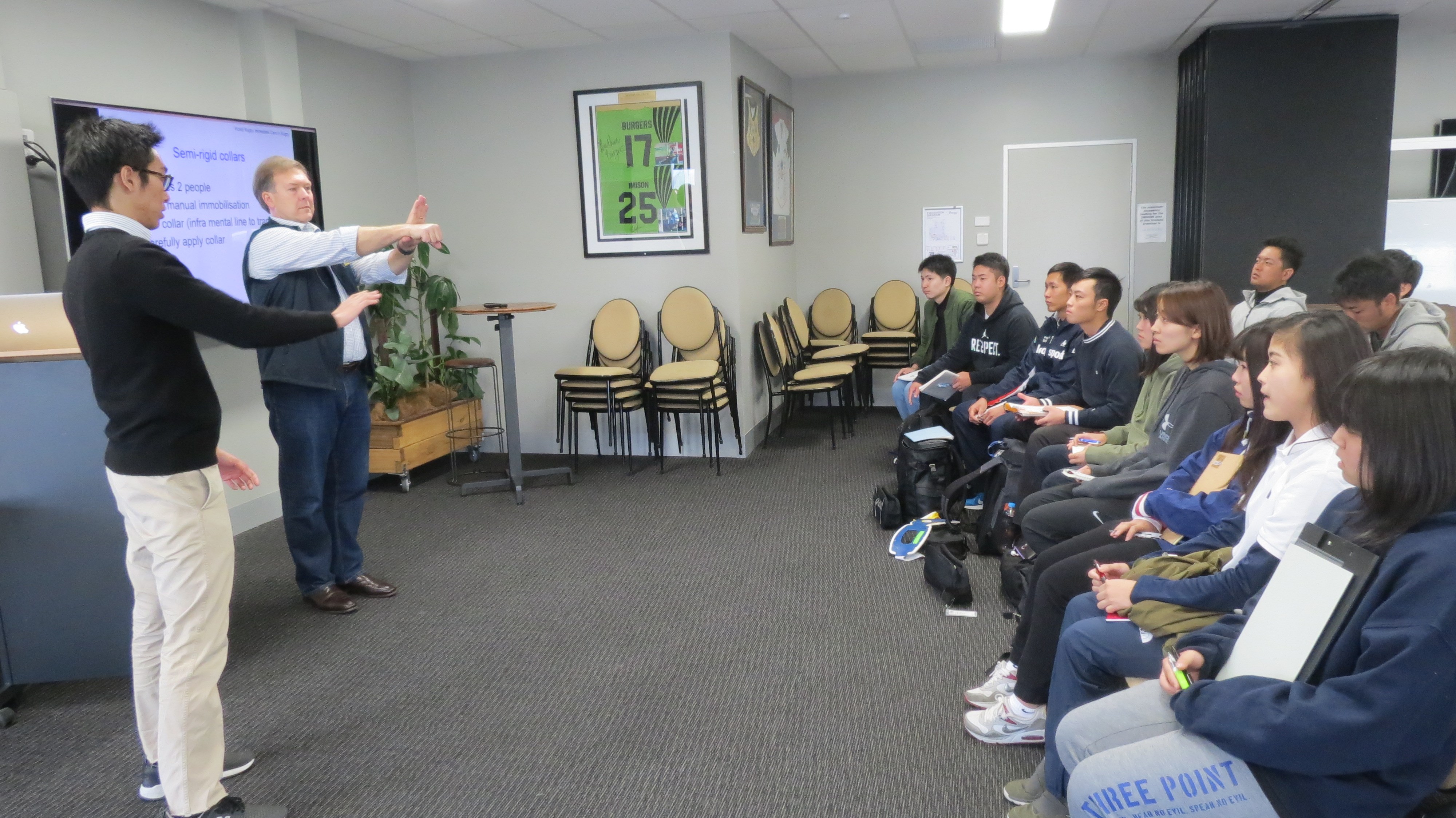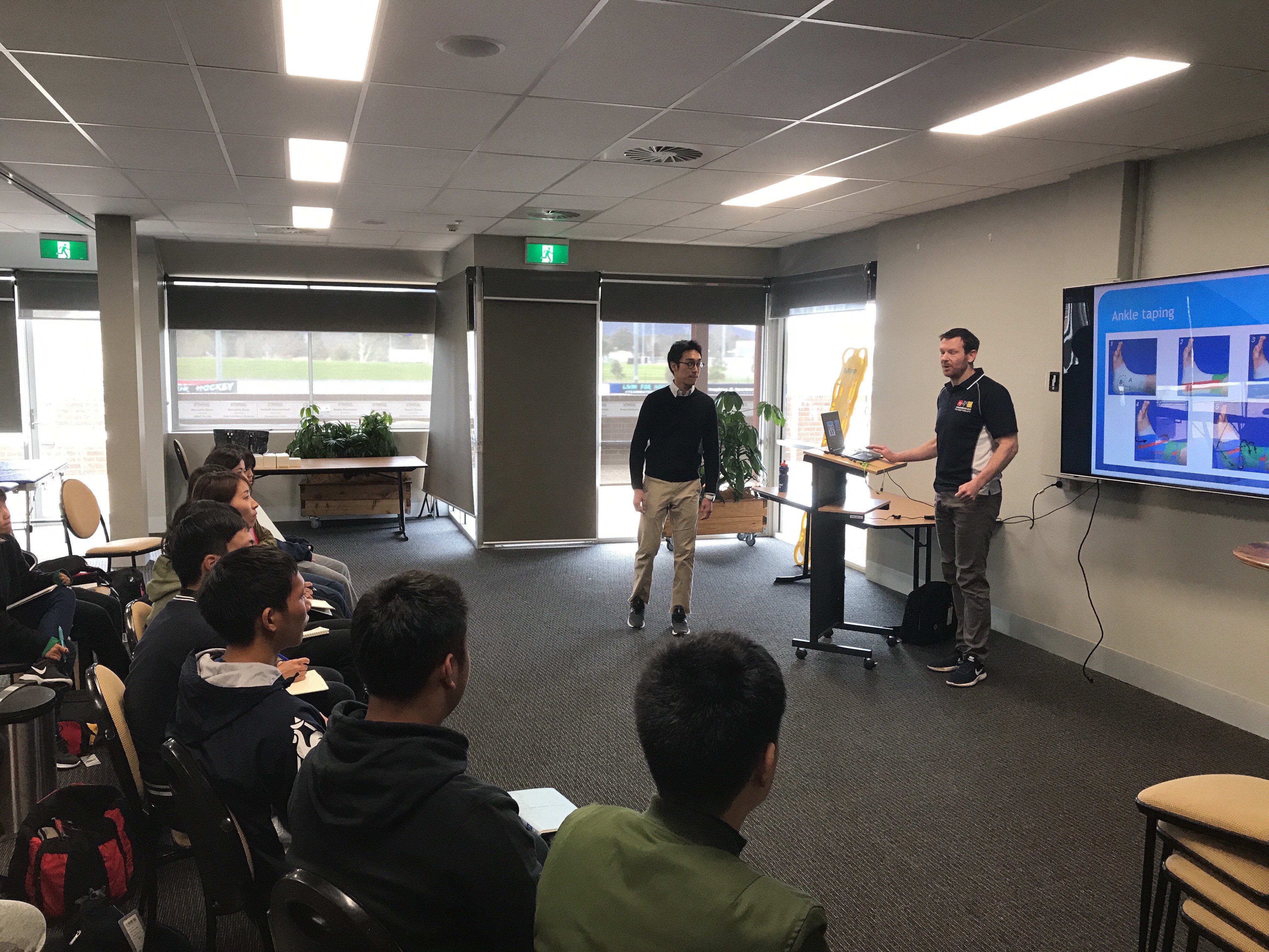 研修の一部は、オーストラリアのスポーツ医学やトレーニングの専門家による講義です。