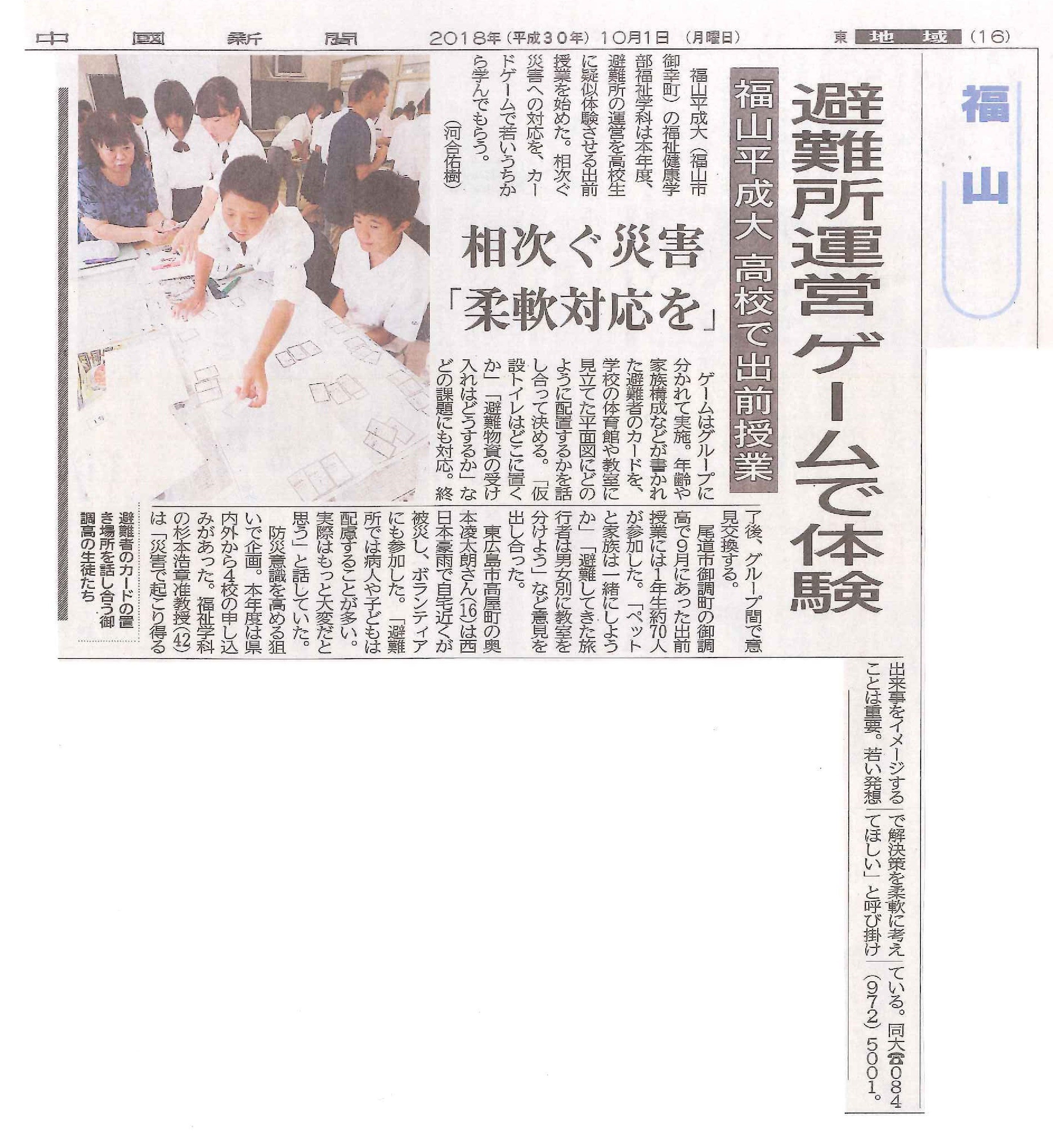 福祉学科の防災福祉教育の取り組みが新聞に掲載されました。