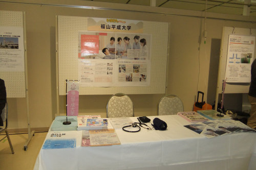 平成30年11月17日(土)・18日(日)、福山市ものづくり交流館において「じばさんフェア2018」が開催されました。備後地域地場産業の1団体として福山平成大学看護学部も出展し、大学・教育機関を紹介しました。看護学科と助産学専攻科についてパネルとパンフレットを使い、教育内容や学生生活、目指せるキャリアなどを説明しました。健康相談コーナーでは血圧測定をしながら健康教育の一部を紹介しました。晴天に恵まれ多くの市民が来られ盛会でした。