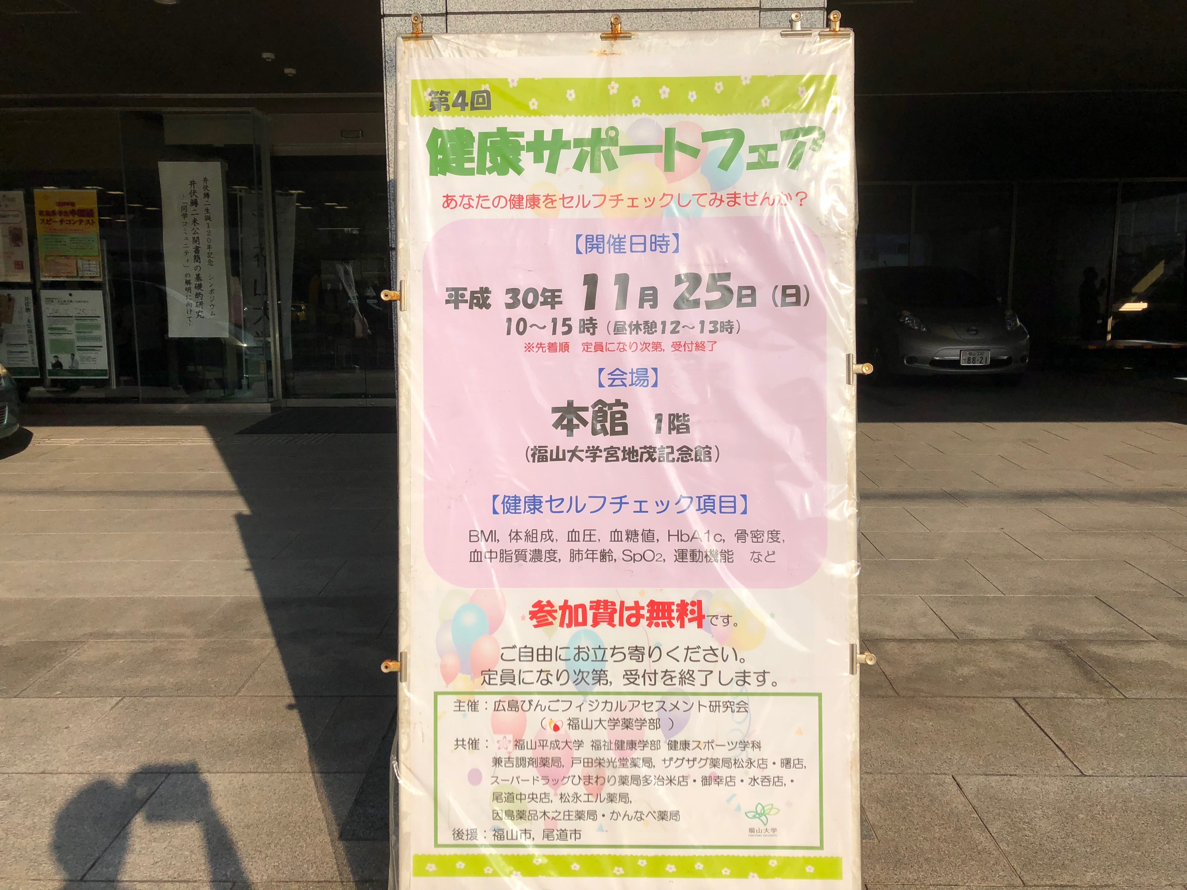 11月25日(日)に福山駅北口にある福山大学宮地茂記念館にて、「健康サポートフェア」が開催されました。