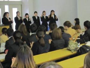 来年度幼稚園教育実習を行う予定の2年生が先輩の話に聴き入りました。