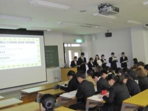 3年生が幼稚園教育実習で学んだことをまとめて発表し、