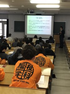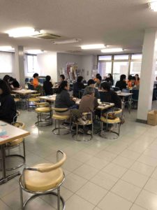 1月12日(土)の認知症カフェは、雨と寒さのせいで一般参加者(介護者含む)27人、学生スタッフ15人、連絡協議会メンバー9人、合計51人といつもに比べて参加者が少なくて残念でした。しかし、学びの時間は広島県には少ない「回想法」の研究者の一人である本学福祉学科の牛田篤先生のお話しを聞くことができ、さらに実際に数人のグループで昔の遊びについて思い出を回想して語り合う体験ができたのはとても有意義でした。認知症の人はさっきあったことや昨日の出来事など直近の記憶は障害されますが、昔の感情を伴う記憶はたくさん残っています。その頃を思い出して、楽しく語らうようにすると認知症の人も介護者も笑顔が出てきて、お互いに気持ちが安定します。写真や昔の道具や遊具を目の前に置くと、記憶を引き出すきっかけになります。ご自宅でもぜひ実行してほしいと思います。次回は、3月30日(土)13時~15時半。認知症の人とのコミュニケーション方法として、「ユマニチュード」について学びます。