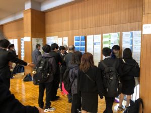 パワーポイントでの発表終了後は体育館に移動し,ポスター発表も実施しました。